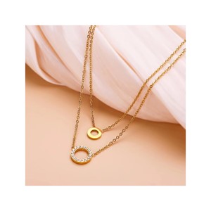 무료 샘플 지르콘 라운드 더블 레이어 체인 스테인레스 스틸 링크 개인화 된 맞춤 골드 도금 패션 보석 목걸이